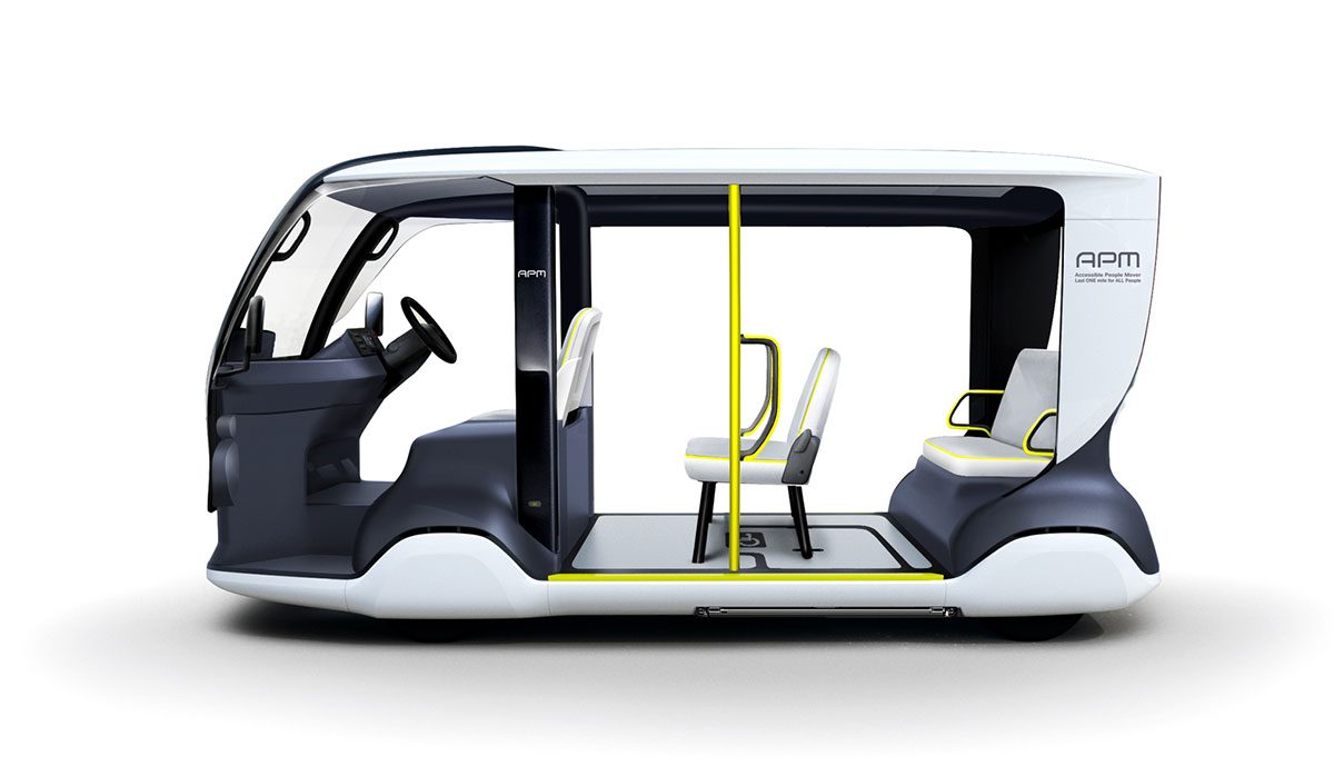 Der APM ist mit niedriger Geschwindigkeit auf kurzen Strecken unterwegs. Das Fahrzeug ist von beiden Seiten zugänglich und bietet Platz für bis zu sechs Personen in drei Sitzreihen. Der Fahrersitz vorn ist mittig in leicht erhöhter Position angebracht, damit der Fahrer alle Fahrgäste sehen und ihre individuellen Bedürfnisse beim Ein- und Aussteigen berücksichtigen kann. Für Fahrgäste im Rollstuhl können die drei Sitze in zweiter Sitzreihe hochgeklappt werden. Befestigungsmöglichkeiten im Boden sollen die Sicherheit erhöhen, Rampen den Zugang vereinfachen.
