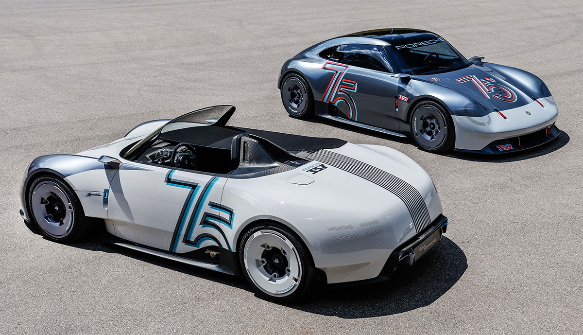 Das Zweifarbkonzept ist von historischen Vorbildern aus dem Motorsport inspiriert. Kameras ersetzen die Außenspiegel. Wie bei den historischen Vorbildern sitzen diese nicht auf den Türen, sondern davor auf den Kotflügeln. Beim offenen 357 erhielten sie eine neue, aerodynamisch optimierte und an Flügel erinnernde Formgebung.