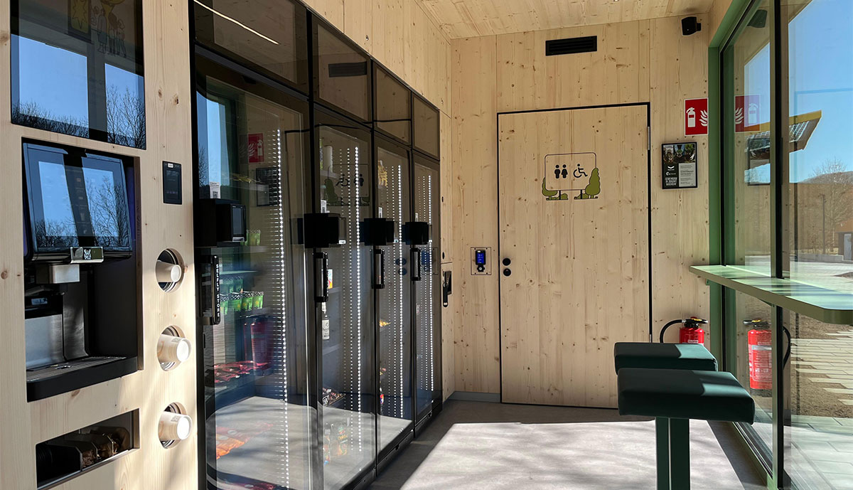 Ich bin begeistert! Das Konzept mit dieser simplen Bauweise und den Automaten, find ich super. Das Wichtigste ist, dass das nicht viel kostet, vorfabriziert werden und als „Container“ hingestellt werden kann. Das scheint hier der Fall zu sein und es sieht ansprechend aus. mehr braucht es nicht, das find ich sehr gut gelungen und könnte sich rechnen.