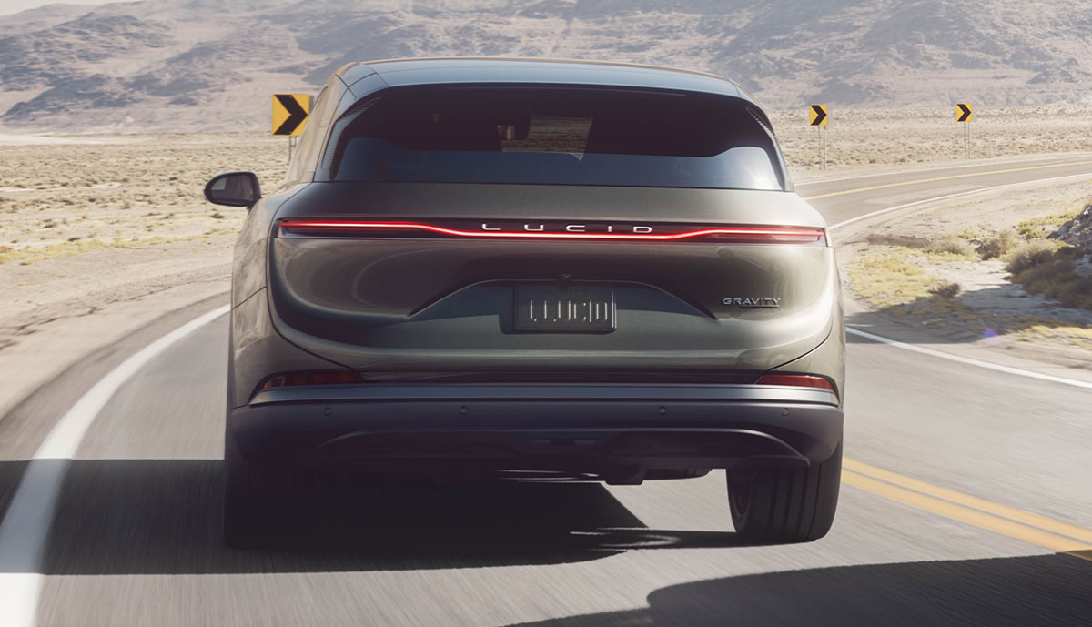 Mit zwei Motoren und Allradantrieb beschleunigt der Gravity Grand Touring dank über 800 PS (588 kW) Systemleistung in 3,6 Sekunden von 0 auf 100 km/h. „Auf der Straße überzeugt der Gravity mit Lucid-typischem Handling, das durch eine Hinterachslenkung weiter verbessert wurde“, heißt es. „Das neue Lenksystem erhöht sowohl die Fahrdynamik bei hohen Geschwindigkeiten auf kurvenreichen Straßen und erleichtert gleichzeitig das Manövrieren im engen Stadtverkehr.“