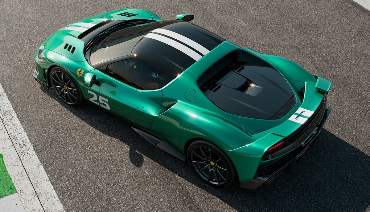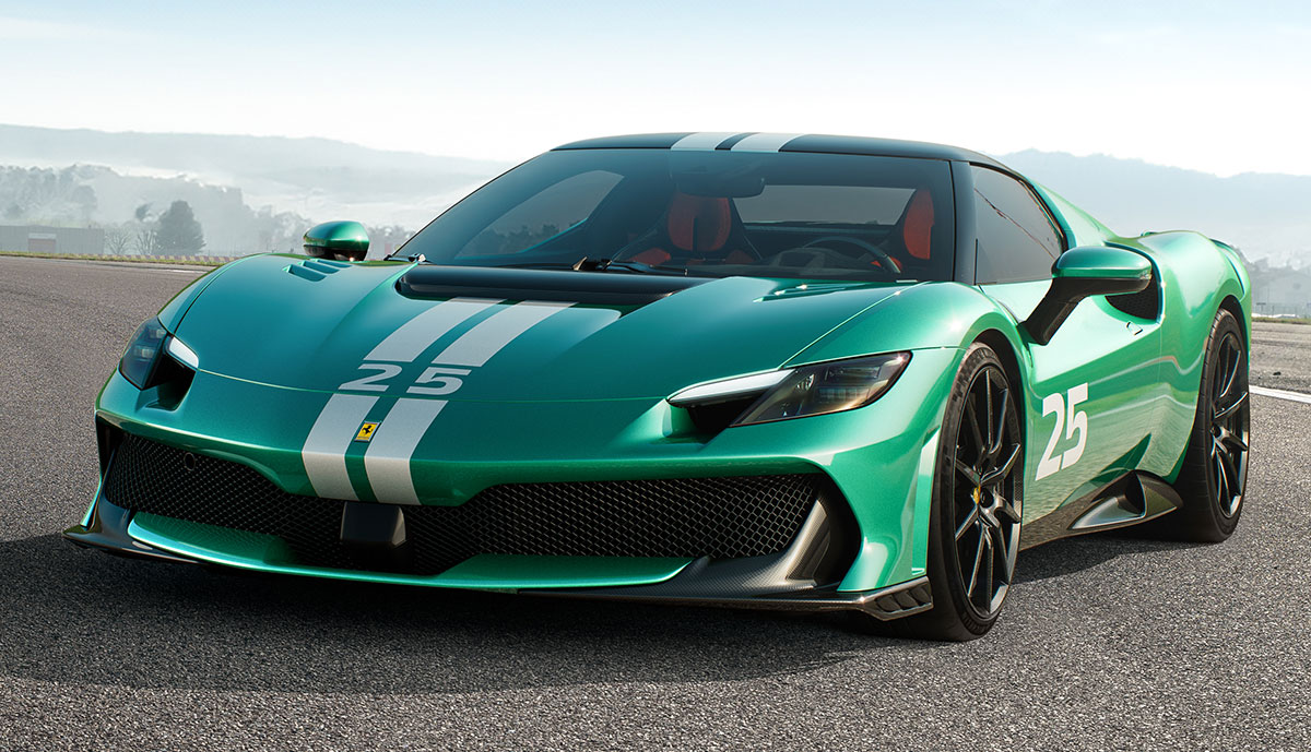 Die Basis stellt der 2021 für 269.000 Euro eingeführte Mittelmotor-Sportwagen 296 GTB. Die neue Version kostet mindestens 407.000 Euro und wird ebenso als Coupé wie Cabrio (ab 462.000 Euro) angeboten. Es gibt ein PS-Plus von 51 PS im Vergleich zum 296 GTB sowie 20 Prozent mehr Abtrieb und eine Gewichtsersparnis von 60 Kilogramm. Bis 135 km/h können bis zu 25 Kilometer rein elektrisch zurückgelegt werden.