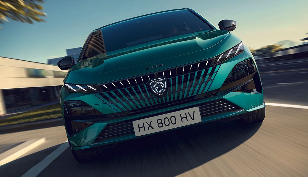 Optisch nähert sich der E-308 an das neue Markendesign an, das mit den Modellen E-3008 und E-5008 eingeführt wurde. Der bisher noch sichtbare Kühlergrill und das markante LED-Tagfahrlicht weichen einem moderner gestalteten Frontdesign mit dynamischerem Grill und der Peugeot-typischen Drei-Krallen-Lichtsignatur. Ab der Ausstattungslinie GT kommt erstmals ein beleuchtetes Markenlogo an der Front zum Einsatz.