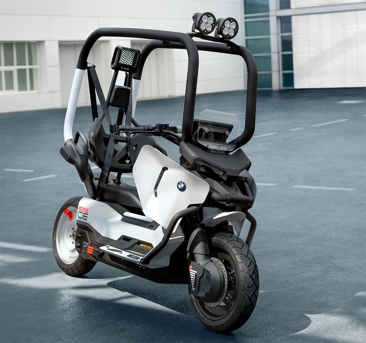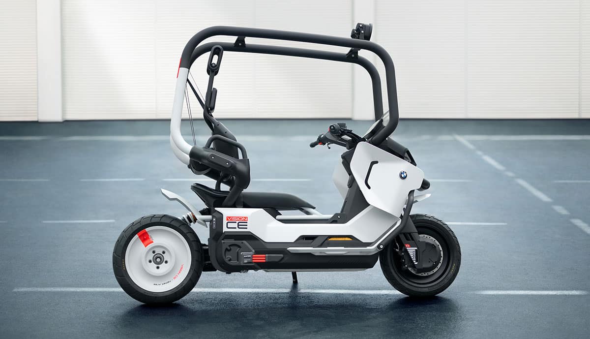 Mit dem BMW Motorrad Vision CE gibt der Konzern einen Ausblick darauf, wie „elektrische Einspurmobilität“ in urbanen Ballungsräumen zukünftig aussehen könnte. Als Highlights werden neben dem emissionsfreien elektrischen Antrieb die Befreiung von der Helmpflicht und der ansonsten üblichen Schutzkleidung genannt.