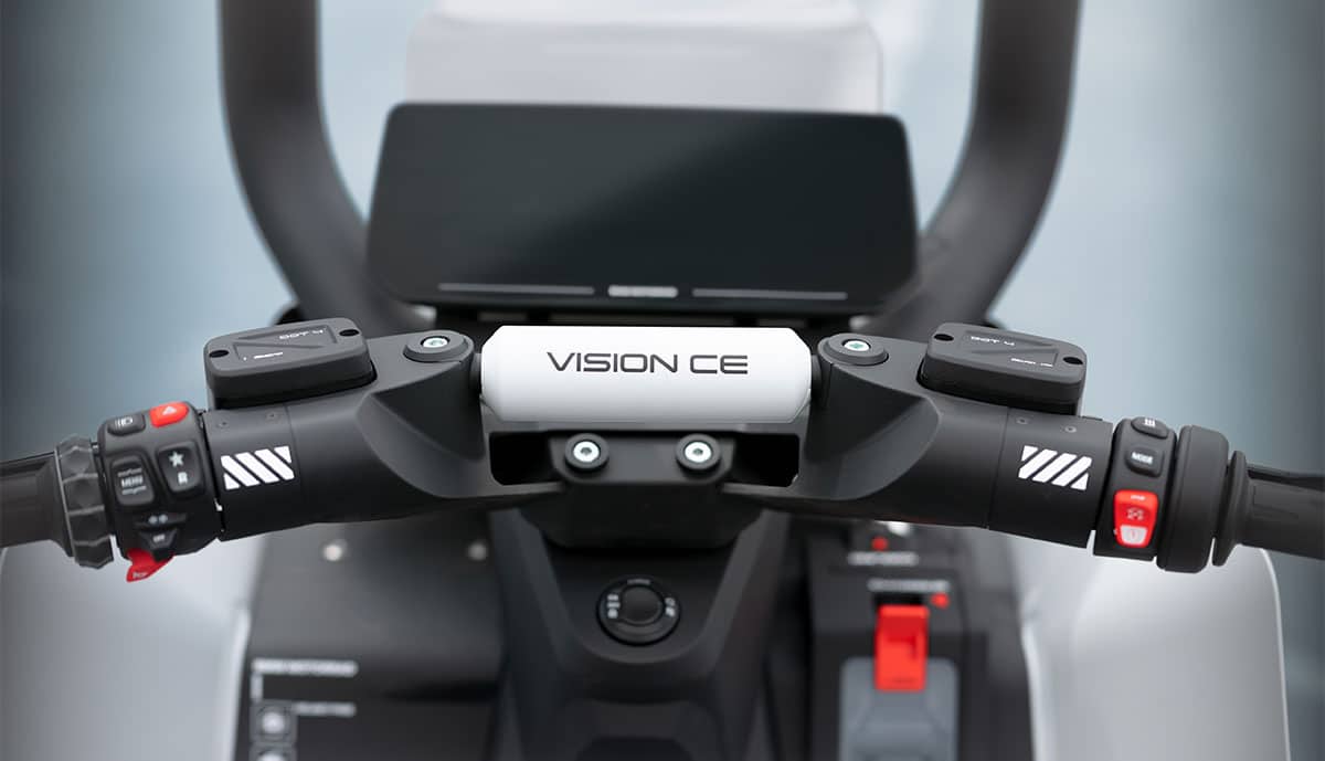 „Die reduzierte Bauhöhe des Cage und dessen offene und luftige Konstruktion lassen den Vision CE in Verbindung mit einem langen Radstand gestreckt, dynamisch und optisch leicht wirken“, so die Designer. Ein weiteres Highlight des Vision CE sei die Balancierfunktion, die es dem Elektrofahrzeug ermöglicht, sich im Stand vollständig selbst auszubalancieren.
