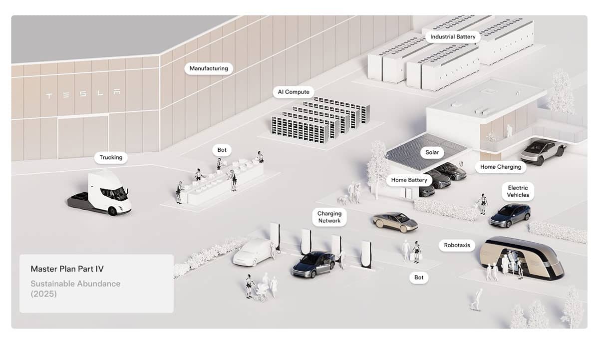 Tesla hat seinen „Master Plan Part IV“ veröffentlicht – den aktuellen Stand der langfristigen Pläne des Unternehmens. Neben Elektrofahrzeugen und dem Energiebereich stehen nun vor allem auch Künstliche Intelligenz (KI) und Roboter im Fokus der Konzernstrategie.