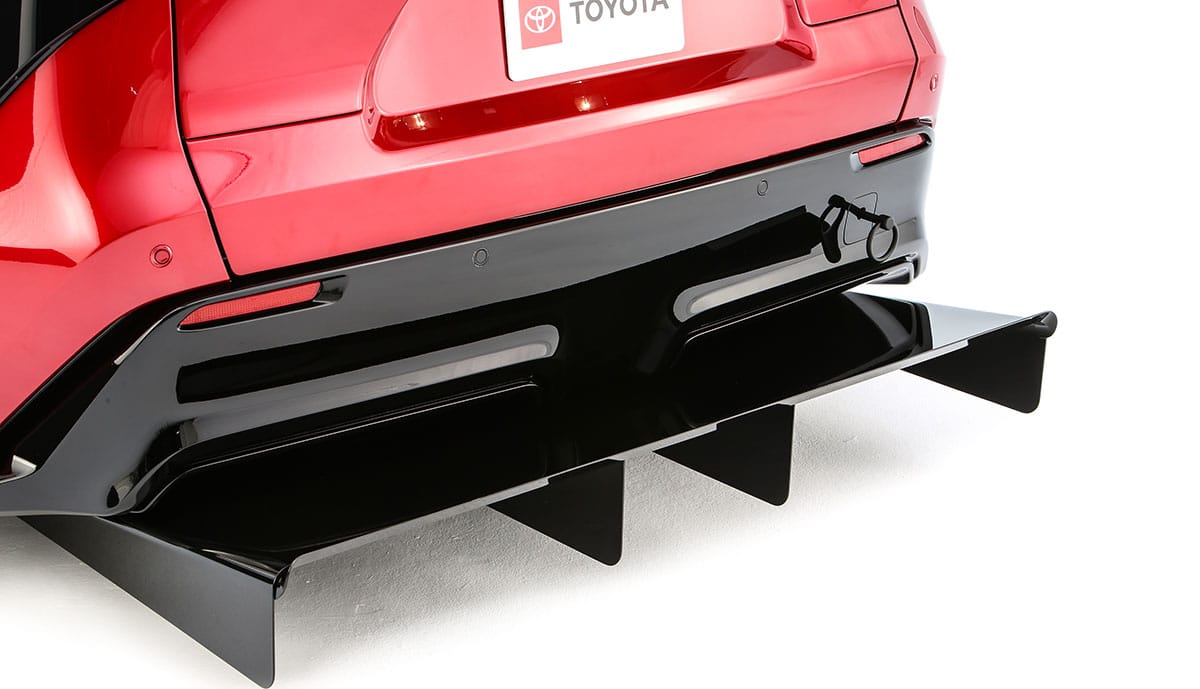 Das Ergebnis ist ein Fahrzeug, das sechs Zoll tiefer liegt und eine um sechs Zoll verbreiterte Spur aufweist. Das umfassende Aerodynamikpaket besteht aus Heckflügel, Seitenschwellern, Frontsplitter und Heckdiffusor. Unter der Karosserie arbeitet ein über 300 kW (400+ PS) starker Allradantrieb, gesteuert durch ein speziell abgestimmtes elektronisches Steuergerät. Für die Fahrwerksabstimmung kommen TEIN-Federbeine zum Einsatz, während das Bremssystem von Alcon und Hawk aus Toyotas Motorsportprogrammen abgeleitet wurde.