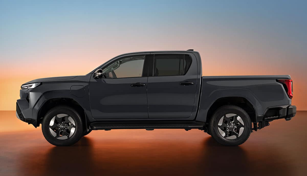 Der erste nur mit Strom betriebene Hilux mache keine Abstriche bei der Qualität, Langlebigkeit und Zuverlässigkeit, versprechen die Japaner. „Er behält die grundlegende Stärke der charakteristischen Body-on-Frame-Konstruktion des Hilux bei und ist für Offroad-Leistung ausgelegt, einschließlich spezifischer Maßnahmen zum Schutz der Batterie vor Beschädigungen oder eindringendem Wasser. Bemerkenswert ist, dass die Wattiefe der des aktuellen Verbrenner-Modells entspricht.“