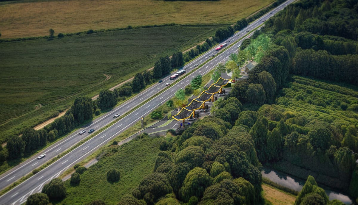 Neben den schnellen Lademöglichkeiten unter Fastneds charakteristischer Solarüberdachung werden die Reisenden in St. Yvi einen Shop, sanitäre Einrichtungen und einen „Garten“ vorfinden. Die Raststätte soll E-Auto-Fahrern die Möglichkeit bieten, einen Snack zu genießen, frischen Kaffee zu trinken und sich zu entspannen, während ihr Fahrzeug mit erneuerbarer Energie geladen wird.