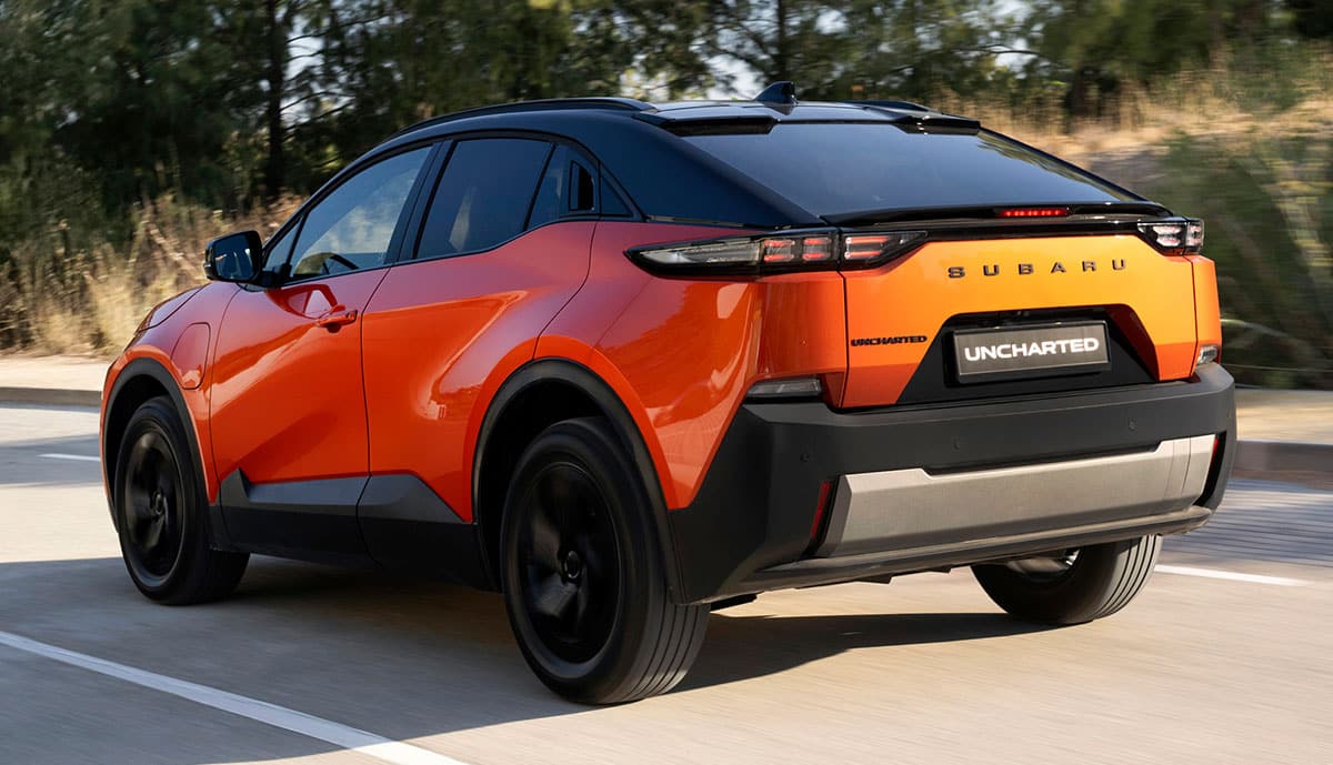 Der neue Uncharted verbinde bewährte Markenqualitäten mit einem leistungsstarken elektrischen Antrieb und einem emotionalen Auftritt, wirbt Subaru. „Klar gestaltete Oberflächen und ein spannendes Zusammenspiel aus Linien und Kanten unterstreichen das hochwertige Erscheinungsbild. Die Coupé-artige Dachlinie sorgt für Dynamik, ohne die Funktionalität zu beeinträchtigen.“ Hinter der stark geneigten Kofferraumklappe verbirgt sich ein Ladeabteil mit 404 Litern Volumen, der lange Radstand und der flache Boden im Innenraum sollen ein „ausgezeichnetes Platzangebot“ bieten.