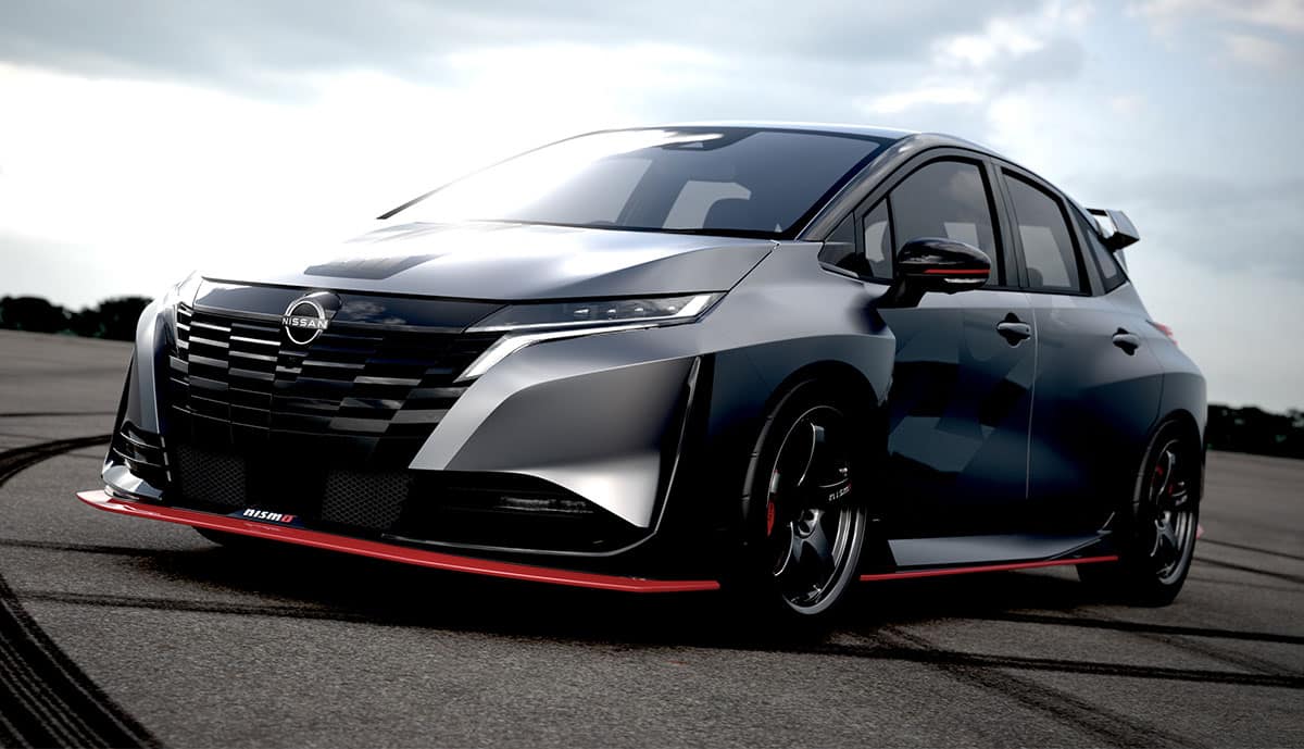 Zu den aerodynamischen Weiterentwicklungen zählen ein Frontspoiler, Seitenschweller, ein Heckdiffusor mit den charakteristischen Nismo Akzenten in Rot, vordere Kotflügel, die den Luftstrom optimieren, seitliche Splitter sowie ein spezieller Heckspoiler. Alle sind laut den Entwicklern darauf ausgelegt, den Abtrieb zu erhöhen und den Luftwiderstand zu verringern. Die exklusive Lackierung in Dark Matte Nismo Stealth Grey soll bei allen Lichtverhältnissen für ein einheitliches Erscheinungsbild sorgen.