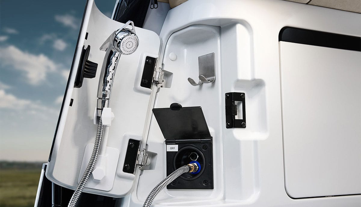 Diese Duschschläuche an der Hecktüre an dieser Art von Camper sind Jahrzehnten üblich..