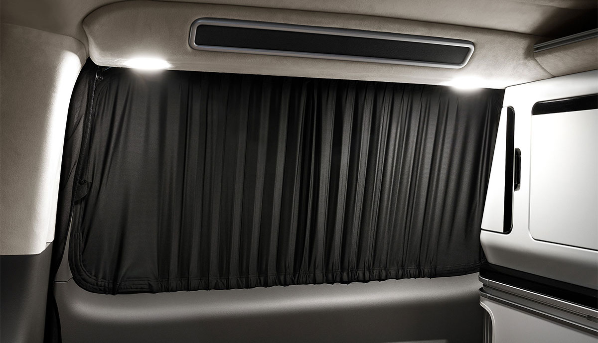 Im Innenraum können zwei Einzelsitze im vorderen Bereich um 180 Grad elektrisch gedreht werden, um einen geräumigen, loungeartigen Gemeinschaftsbereich zu schaffen. Im hinteren Bereich lassen sich die Sitze per Knopfdruck flach umklappen, wodurch der Innenraum schnell in einen Schlafbereich für zwei Personen verwandelt wird.