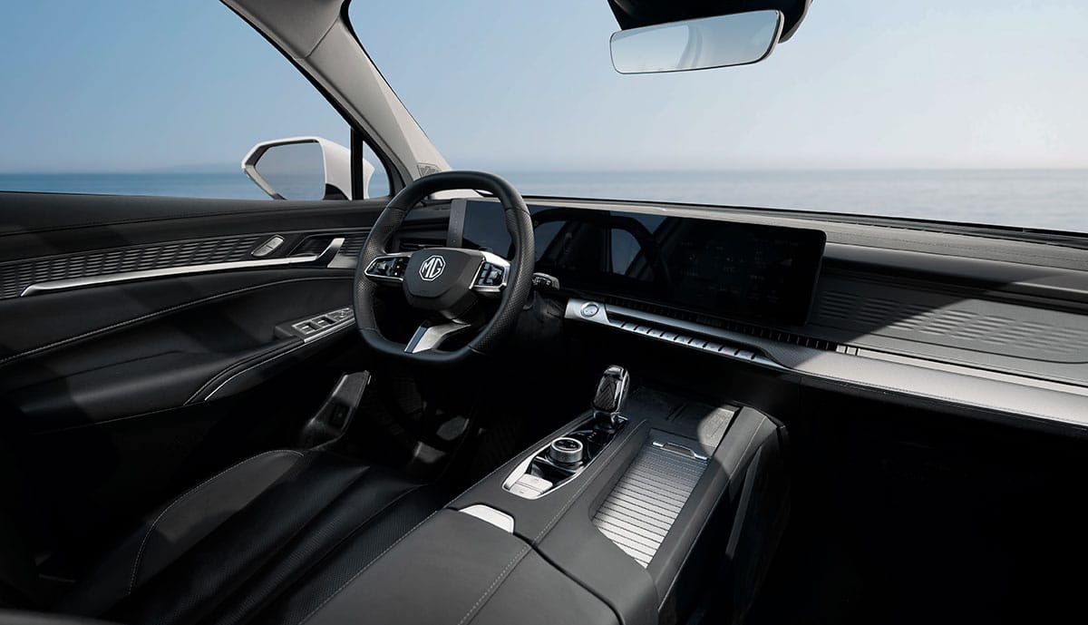 „Helle, hochwertige Materialien und große Fensterflächen schaffen eine angenehme Atmosphäre im Innenraum“, wirbt MG. Zur umfangreichen Serienausstattung zählten unter anderem ein Panorama-Glasschiebedach, eine 3-Zonen-Klimaautomatik sowie elektrisch verstellbare Vordersitze (ausstattungsabhängig). Mit einer gebremsten Anhängelast von bis zu 2000 Kilogramm eigne sich der MGS9 PHEV für den Transport von Anhängern oder Wohnwagen.
