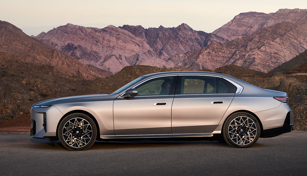 Zur Premiere zeigt BMW drei Varianten des i7. Alle nutzen das gleiche Akkupaket und verfügen über elektrischen Allradantrieb mit zwei E-Motoren. An den E-Maschinen selbst ändert sich nichts, BMW hat die bekannten Gen5-Einheiten nach eigenen Angaben aber auf die neue Batterie abgestimmt. Neu ist auch die Bezeichnung: Aus i7 xDrive60 wird i7 60 xDrive.